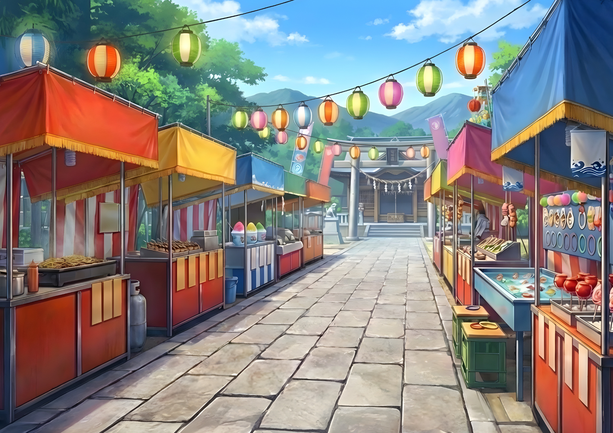 神社の背景用イラストです。無料・登録不要でダウンロードできます。画像下の「Download」ボタンをクリックすると、ダウンロードが始まります。