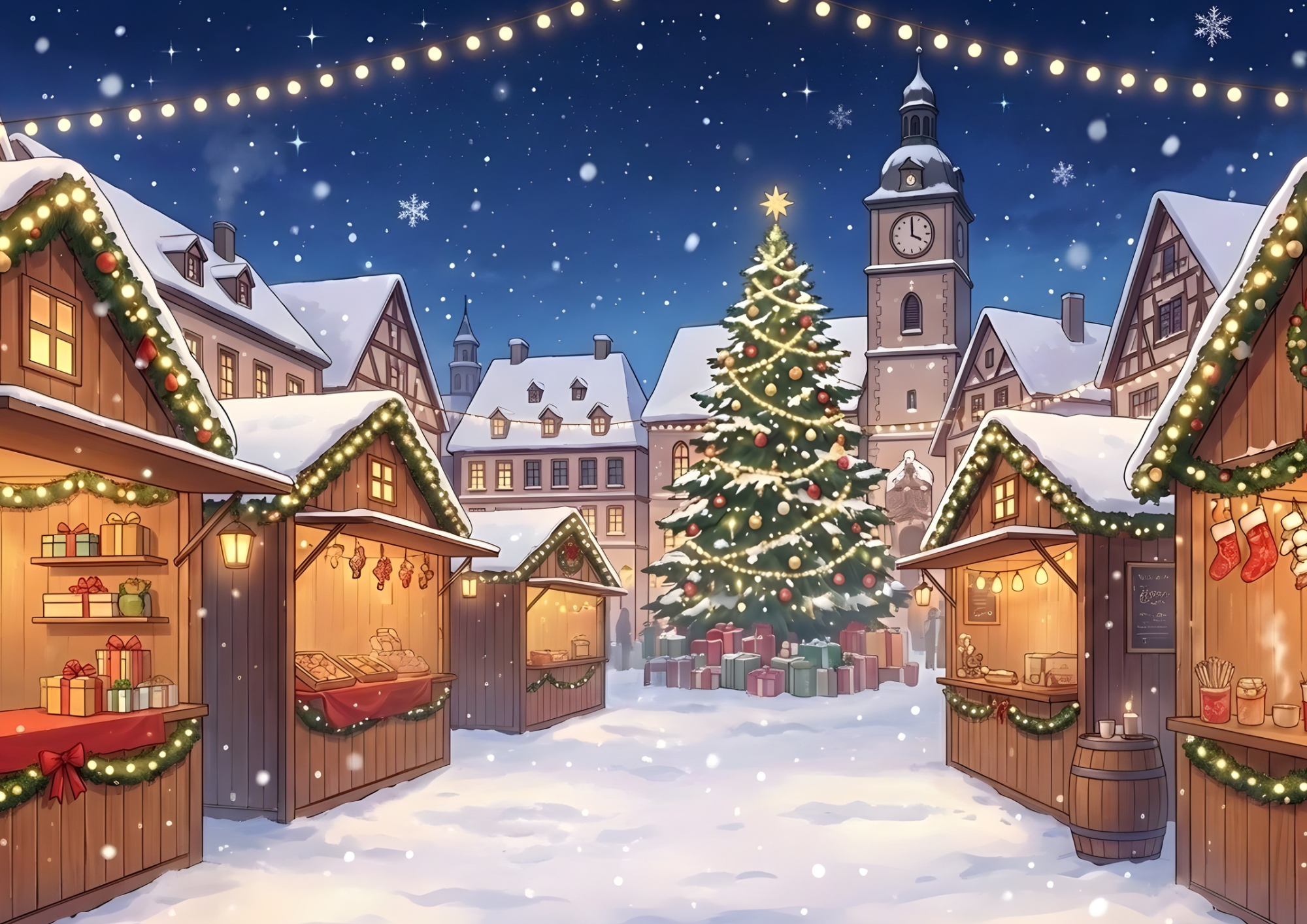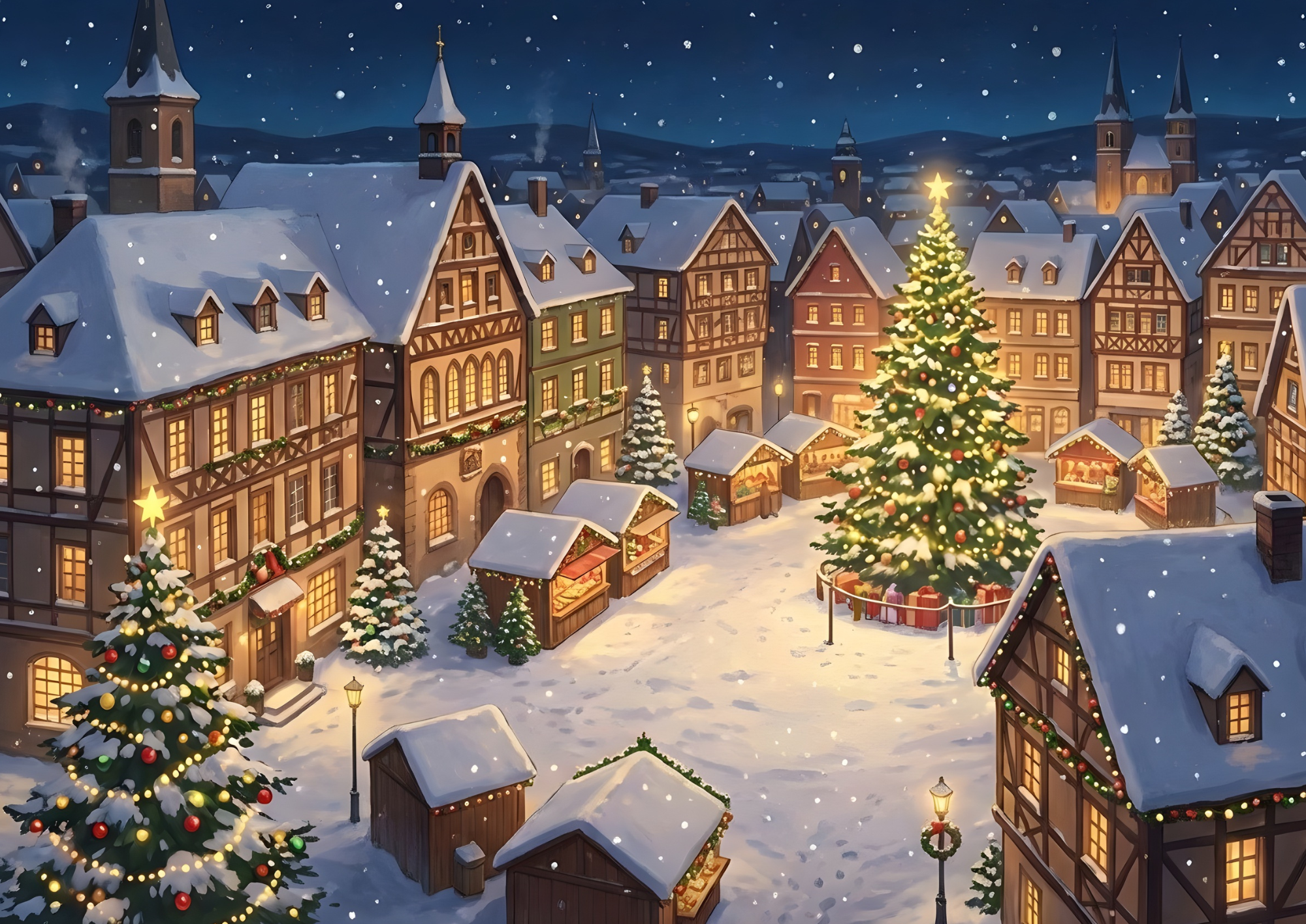 クリスマスシーズンの街並みをイメージした背景イラストです。